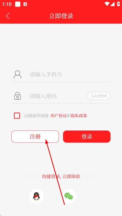 3、在立即登錄頁(yè)面,點(diǎn)擊注冊(cè)按鈕。