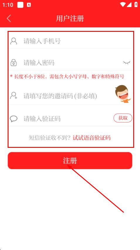 4、在用戶注冊(cè)頁(yè)面,按要求輸入所需的信息,點(diǎn)擊注冊(cè)按鈕完成注冊(cè)。