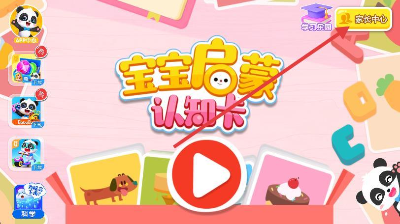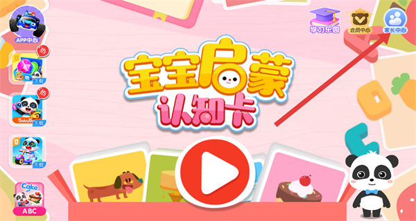 1、打開寶寶啟蒙認(rèn)知卡,點(diǎn)擊右上角的家長中心。