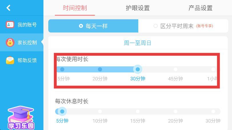 4、找到每次使用時長,通過滑動圓點(diǎn)來設(shè)置想要的使用時長。