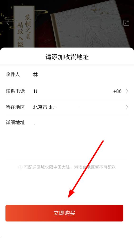 4、填好收貨地址后,再次點(diǎn)擊立即購買,然后按照提示完成支付等后續(xù)操作,即可完成買書流程。