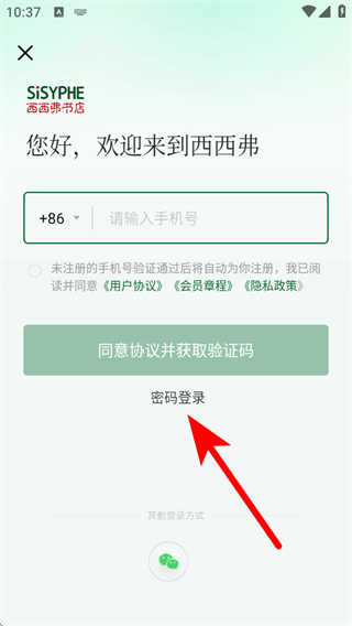 3、在登錄選擇頁面,點(diǎn)擊密碼登錄,進(jìn)入密碼登錄頁面。