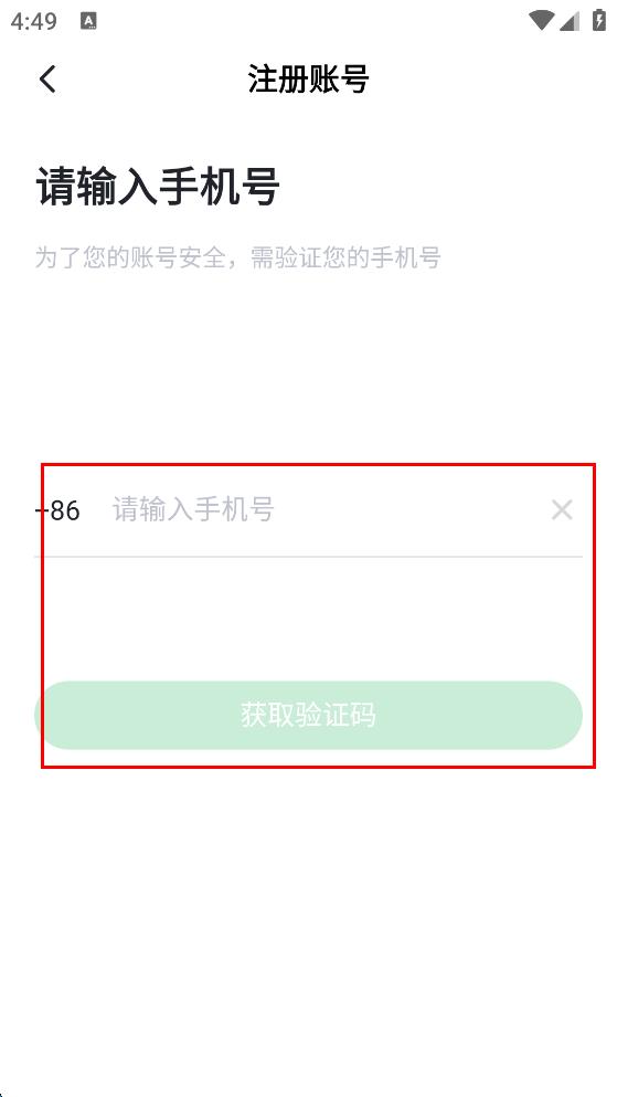 3、進(jìn)入注冊賬號頁面,在“請輸入手機(jī)號”欄輸入手機(jī)號,點(diǎn)擊“獲取驗(yàn)證碼”,輸入收到的驗(yàn)證碼。