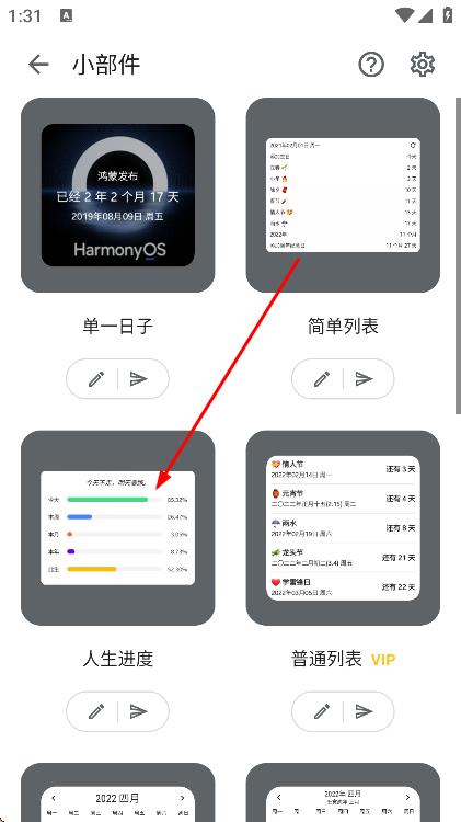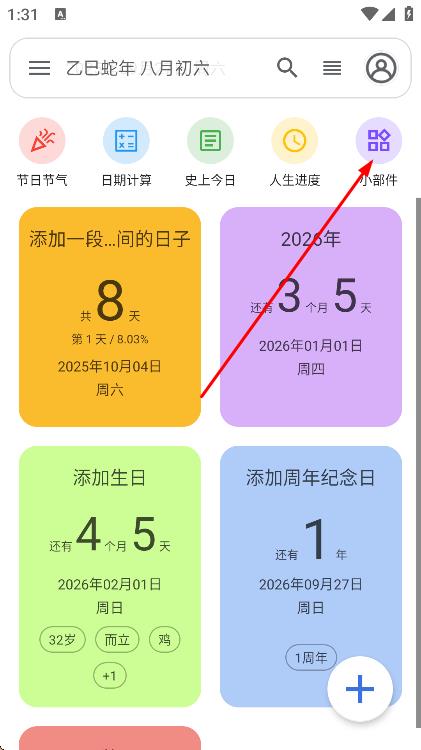 1、打開記得日子,點(diǎn)擊主界面右上角的小部件。
