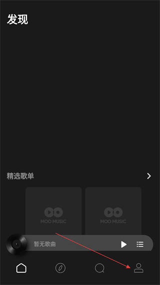 1、啟動(dòng)MOO音樂(lè)的應(yīng)用,進(jìn)入時(shí)點(diǎn)擊右下角人像的按鈕。