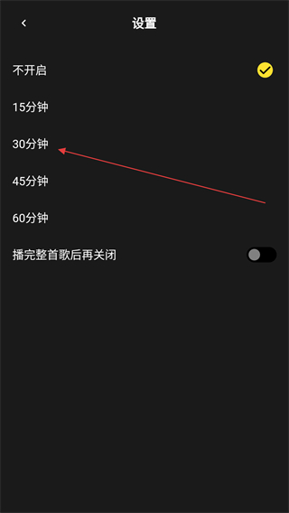 4、在設(shè)置的界面內(nèi),選擇并點(diǎn)擊要定時(shí)關(guān)閉的時(shí)間即可。
