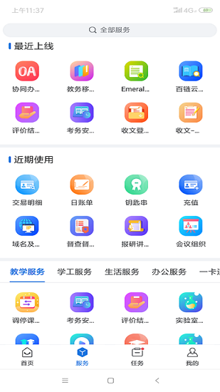 3、提供教學(xué)服務(wù)、學(xué)工服務(wù)、辦公服務(wù)等一系列功能,讓校園生活更便捷。