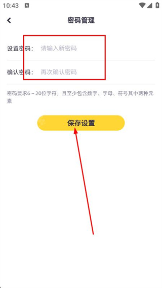 4、輸入密碼,點(diǎn)擊保存設(shè)置,即可完成密碼設(shè)置。
