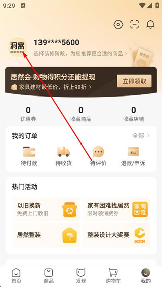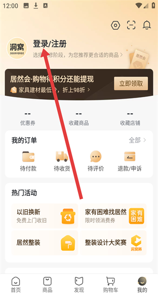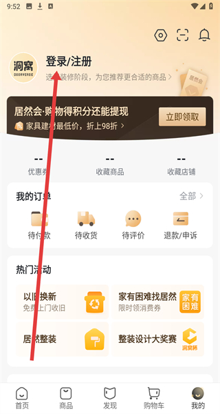1、在洞窩APP首頁(yè)點(diǎn)擊右下角“我的”,進(jìn)入個(gè)人中心頁(yè)面。