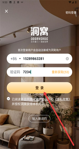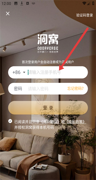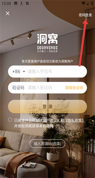 4、密碼登錄界面輸入注冊(cè)手機(jī)號(hào)和密碼,勾選協(xié)議后完成賬號(hào)登錄操作。