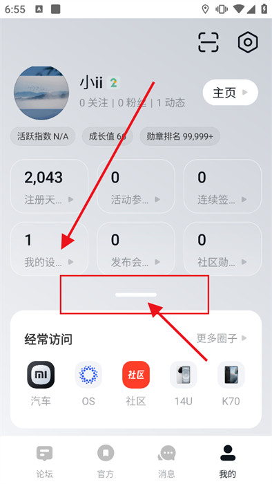 該部分為用戶設(shè)置的詳細(xì)列表部分。在該列表中可以清楚的查到當(dāng)前登錄用戶的相關(guān)信息,如:賬號(hào)等。還可在此檢測【小米社區(qū)APP】的相關(guān)最新版本動(dòng)態(tài)及當(dāng)前版本的相關(guān)信息列表。