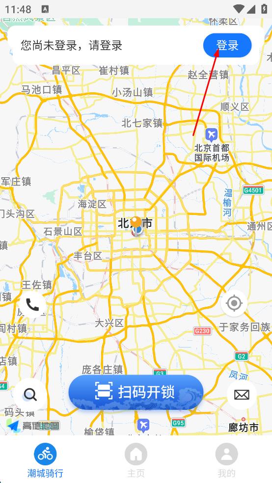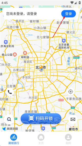 1、打開共享出行類軟件,若頁面提示“您尚未登錄,請(qǐng)登錄”,點(diǎn)擊右上角“登錄”按鈕。