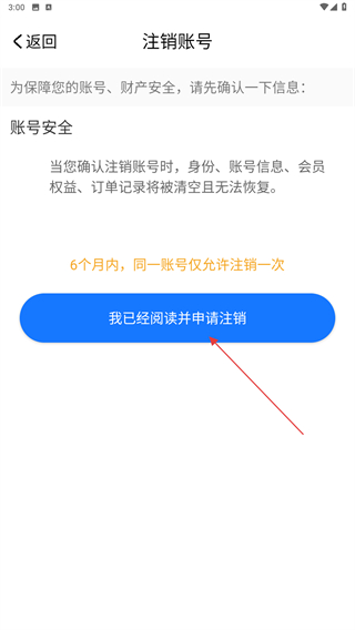 4、進(jìn)入到申請(qǐng)的頁面內(nèi),點(diǎn)擊我已閱讀并申請(qǐng)注銷即可。