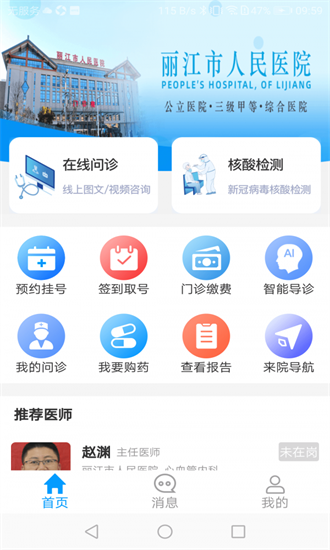麗江市人民醫(yī)院app是一款專注于便捷看病的平臺(tái).主要在線看病、健康管理、預(yù)約掛號(hào)、線上購(gòu)藥、醫(yī)療信息查詢、門診繳費(fèi)、預(yù)約體檢、檢驗(yàn)檢查報(bào)告查詢、電子健康檔案、疾病風(fēng)險(xiǎn)評(píng)估、遠(yuǎn)程會(huì)診和康復(fù)等健康醫(yī)療服務(wù).
