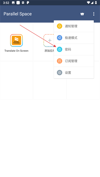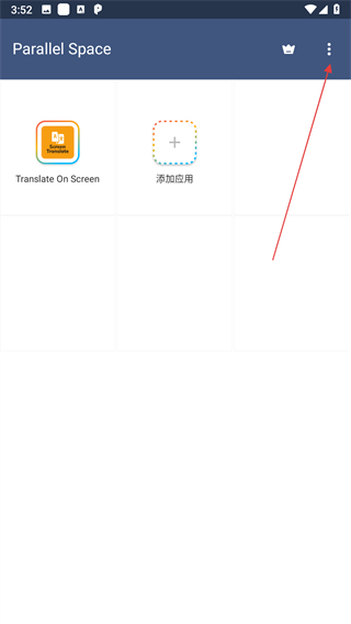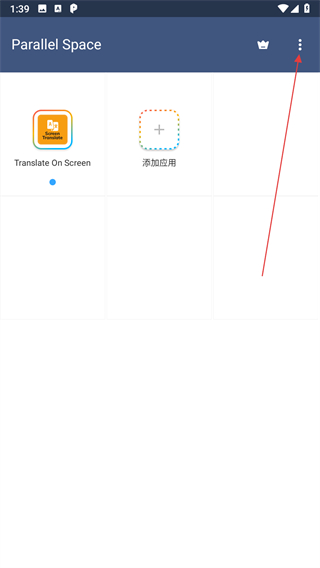 1、打開平行空間應(yīng)用,點(diǎn)擊界面右上角的三點(diǎn)菜單按鈕,展開功能選項(xiàng)。
