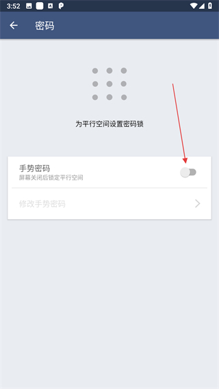 3、點(diǎn)擊手勢密碼的開關(guān)按鈕,將其打開。