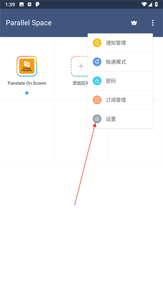 2、在功能選項(xiàng)列表中,選擇設(shè)置選項(xiàng),進(jìn)入平行空間的設(shè)置界面。