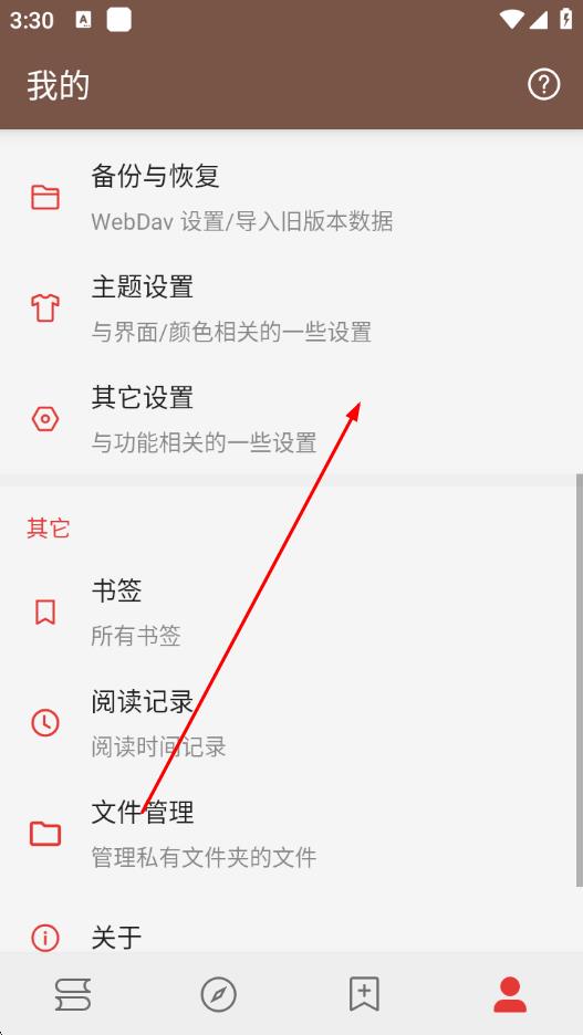 2、在“我的”頁面中,找到并點(diǎn)擊其它設(shè)置選項(xiàng)。