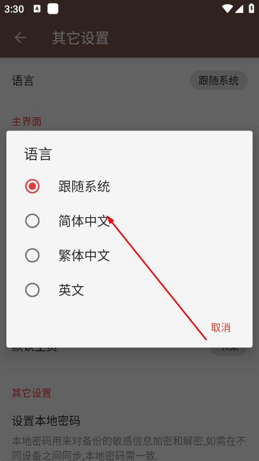 4、在彈出的語言選擇窗口中,點(diǎn)擊簡(jiǎn)體中文選項(xiàng),即可將閱讀App的語言設(shè)置為中文。