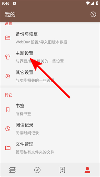 2、在個(gè)人界面,點(diǎn)擊主題設(shè)置選項(xiàng),進(jìn)入主題設(shè)置頁面。