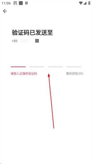 3、在驗證碼輸入頁面填寫收到的驗證碼,未注冊用戶將自動完成賬號注冊。