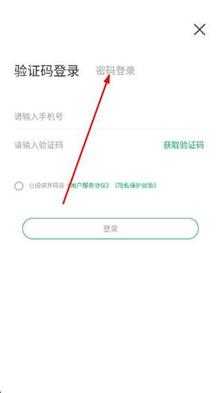 3、進(jìn)入登錄頁(yè)面,選擇并點(diǎn)擊密碼登錄選項(xiàng)。