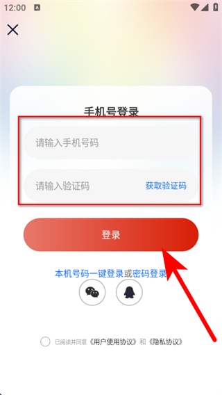 3、在界面輸入手機(jī)號(hào)碼等信息后,點(diǎn)擊登錄即可完成賬號(hào)注冊(cè)。