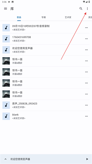 1、啟動音樂速度調(diào)節(jié)器的應(yīng)用,點(diǎn)擊右上方三個點(diǎn)的圖標(biāo)。