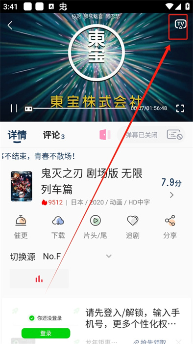4、在播放頁面就可以看到右上角會有一個【tv標(biāo)志】點擊此標(biāo)志去進行投屏;