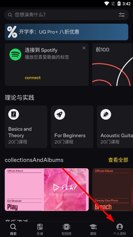 1、打開吉他助手app,點(diǎn)擊底部導(dǎo)航欄最右側(cè)個(gè)人資料圖標(biāo),進(jìn)入相關(guān)頁(yè)面。