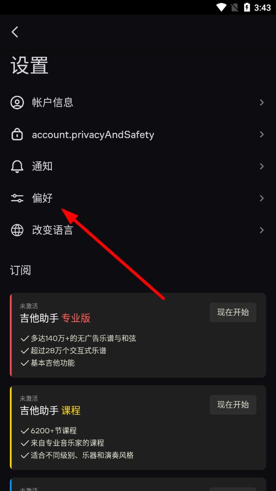 3、在設(shè)置界面里,找到并點(diǎn)擊偏好選項(xiàng),進(jìn)入偏好設(shè)置頁(yè)面。