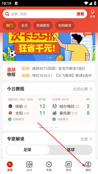 1、打開(kāi)盈球大師APP,點(diǎn)擊底部我的選項(xiàng)。