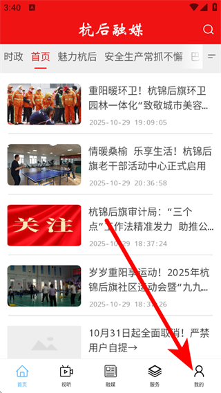1、打開杭后融媒APP,點擊底部導航欄的我的,進入個人頁面。