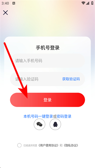 2、在個人頁面中,點擊手機圖標樣式的登錄入口,進入手機號登錄界面。