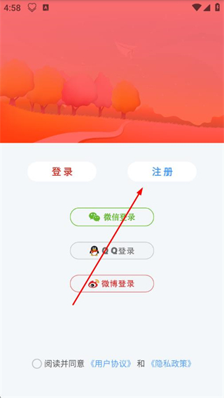 1、打開情侶我和你APP,點擊“注冊”選項,進入注冊界面。