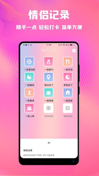 情侶記錄軟件是一款能夠幫助情侶記錄下戀愛中的各種事情的軟件。軟件還可以設(shè)置一些特殊日子的提醒,讓用戶能夠更加關(guān)愛對(duì)方。軟件上還可以快速的記錄下來(lái)當(dāng)天的事情并做下心情筆記,能夠讓充滿幸福的回憶保存下來(lái)。