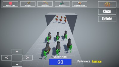 您可以通過簡單地選擇勇士并通過觸摸地面將其添加來觀看無限的大規(guī)模戰(zhàn)術(shù)戰(zhàn)斗,并觀看綠色和橙色團(tuán)隊(duì)完全進(jìn)行最有趣的準(zhǔn)確戰(zhàn)斗模擬,或者您可以玩