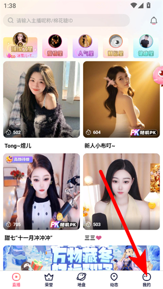 1、打開棉花糖直播APP,點擊右下角我的,進(jìn)入個人功能頁面。