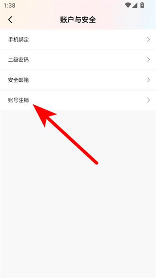 4、在賬戶與安全頁面中找到賬號注銷選項并點擊,按照頁面提示完成驗證等操作即可注銷棉花糖直播賬號。