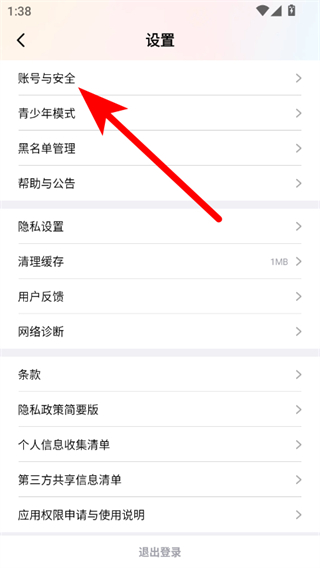 3、在設(shè)置頁面中找到賬號與安全選項并點擊,進(jìn)入賬戶與安全相關(guān)功能頁面。