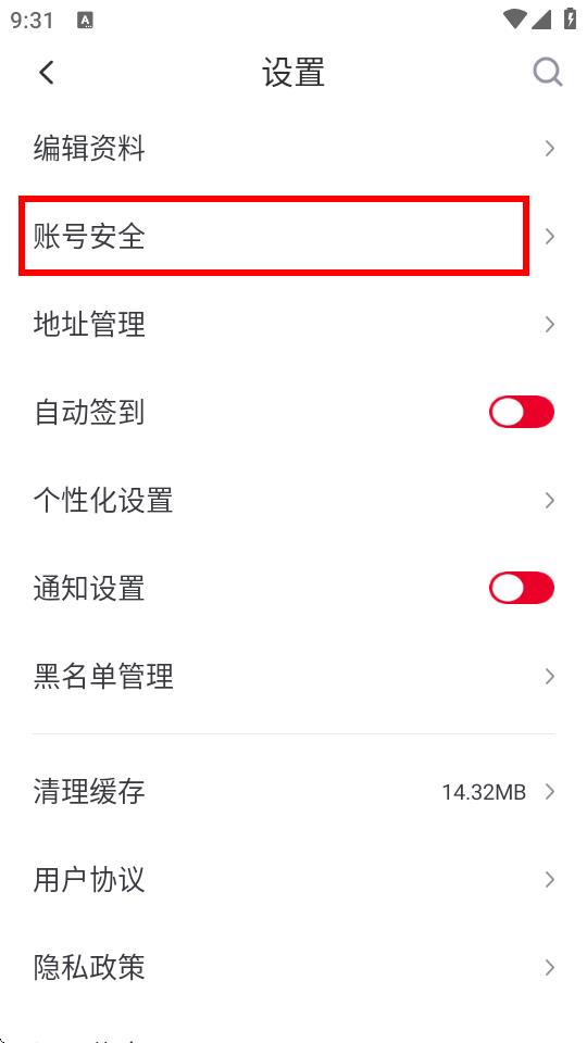 3、在設(shè)置界面中,點擊賬號安全選項進入賬號安全頁面。
