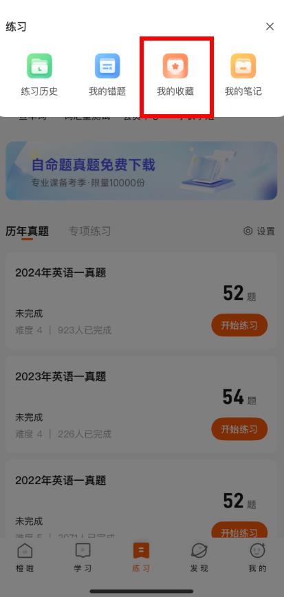 3、在彈出的菜單中,點擊我的收藏,即可查看收藏的題目。
