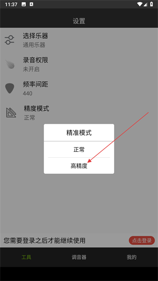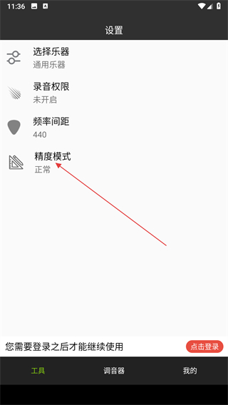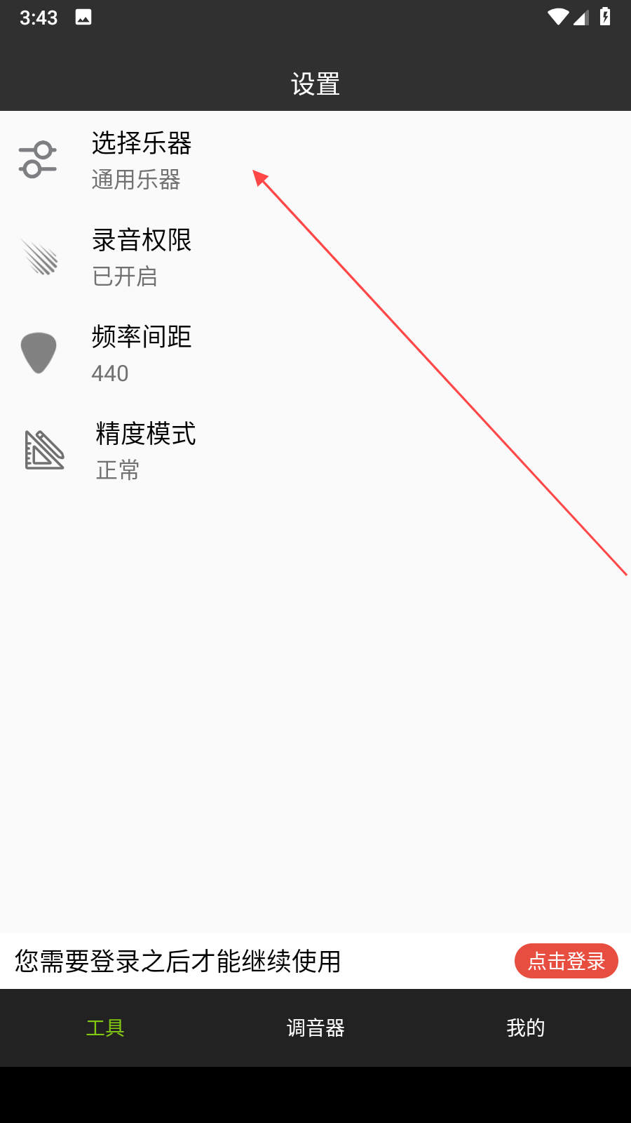 2、在工具頁(yè)面中,找到設(shè)置入口并點(diǎn)擊,進(jìn)入調(diào)音器的設(shè)置界面。