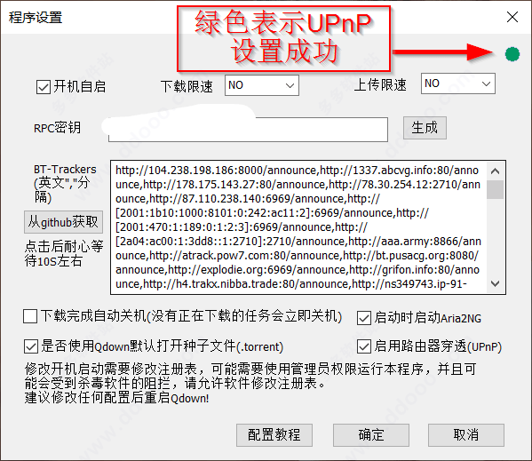 4、BT-Trackers設(shè)置,不會(huì)和不懂的小伙伴直接點(diǎn)擊從github獲取按鈕一次即可自動(dòng)配置(建議經(jīng)常點(diǎn)擊該按鈕哦,保證BT下載速度的秘訣);