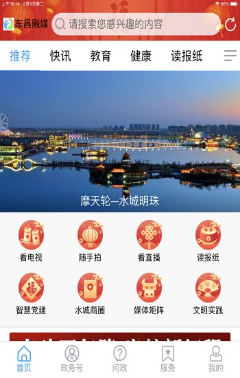 東昌融媒是東昌本地的一款新聞資訊的手機(jī)app,在這里用戶能夠看到本地發(fā)生的各種新聞實(shí)事,第一時(shí)間就能夠了解到本地發(fā)生的各種狀況,還有非常多的本地發(fā)布的通知和政府角色,非常的方便。軟件還提供了看電視、隨手拍、看直播、讀報(bào)紙、黨建等等等等快捷功能,幫助用戶更好進(jìn)行各種活動(dòng)。