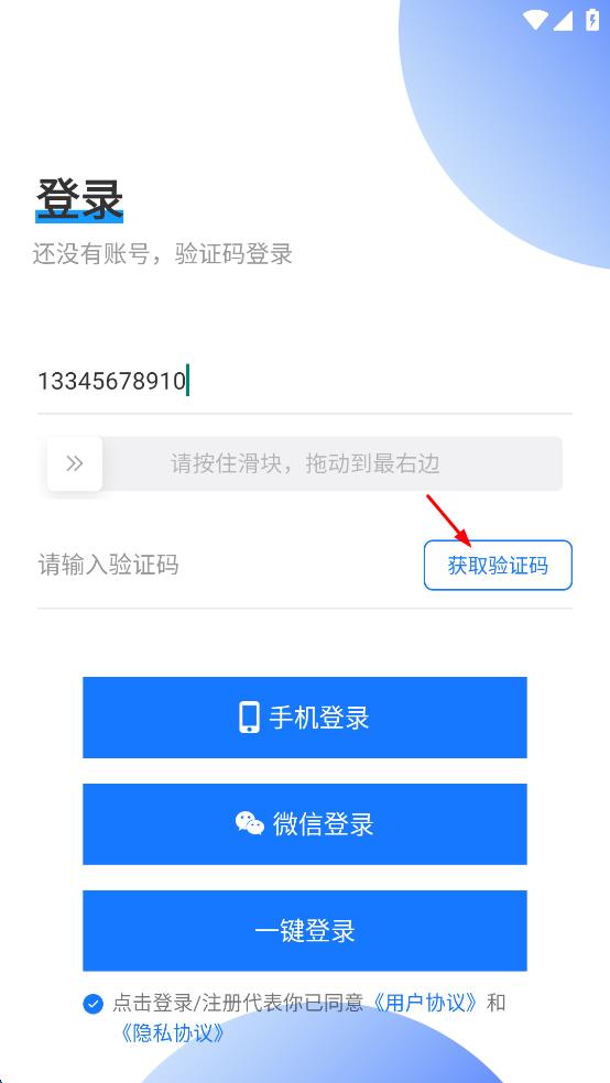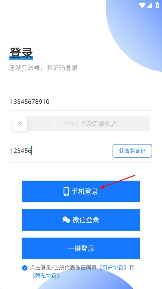 4、輸入完驗證碼后,點擊“手機登錄”按鈕,完成賬號登錄流程,進(jìn)入APP主界面。