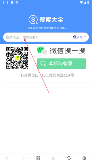1、打開搜索大全應(yīng)用,點(diǎn)擊進(jìn)入搜索框頁面。