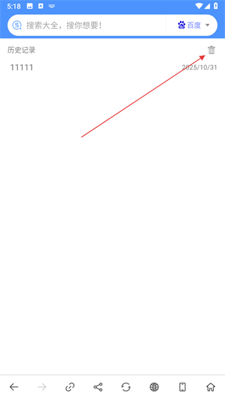 2、在歷史記錄頁面,點(diǎn)擊右上角的垃圾桶圖標(biāo)。