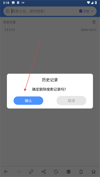 4、刪除后,歷史記錄區(qū)域會(huì)清空,即成功刪除歷史記錄。