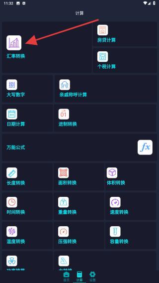 2、進(jìn)入計算的頁面內(nèi),點(diǎn)擊匯率換算的功能按鈕。